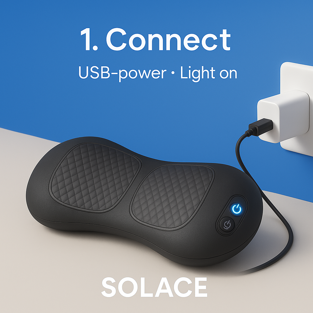 The SOLACE™ Smart Pillow is USB-powered for true plug-and-play